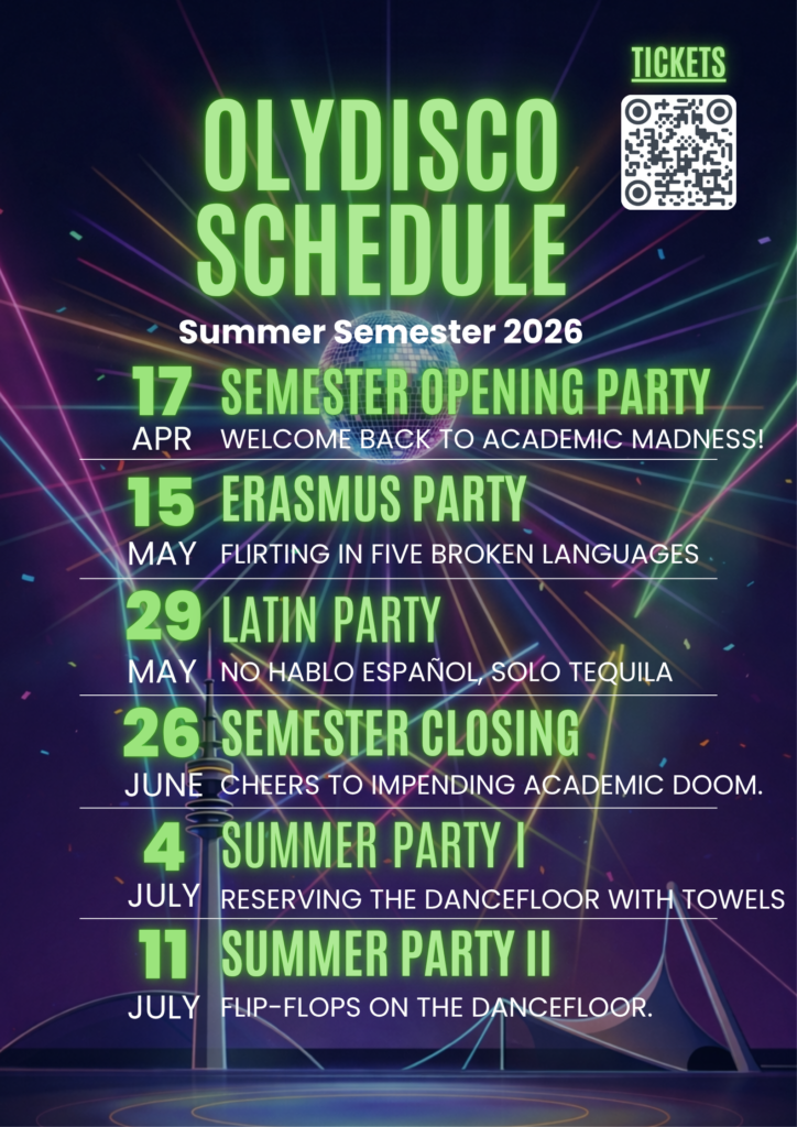 • Student-council parties : Every semester, OlyDisco hosts various student council parties. Most famous among them is the Sportler-Party. If your council is in need of a great party, don’t hesitate to contact us.